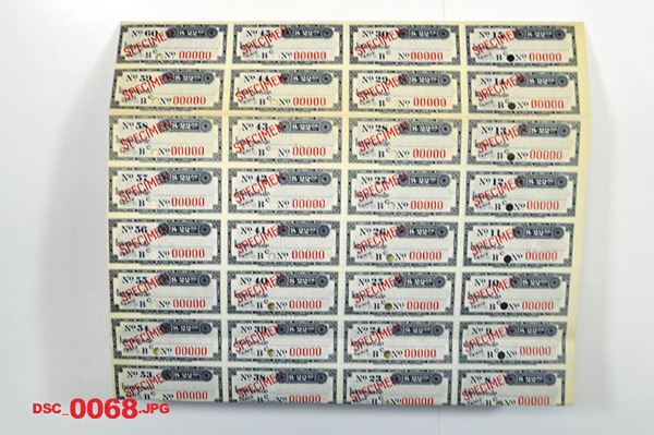 Guayaquil, Ecuador. $500 Specimen 9% Coupon Bond, Black print on steel gray border and under tint, Image of allegorical figures sitting together with a factory in the background, Specimen overprints and POC's, VF-XF condition, ABNC.