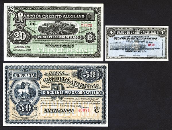 Uruguay. 4 Centesimos; 20, 50 Pesos. P-S161r; S164r; S165r. A well matched group of numbered but unsigned remainders. All Choice Uncirculated. 3 pieces.