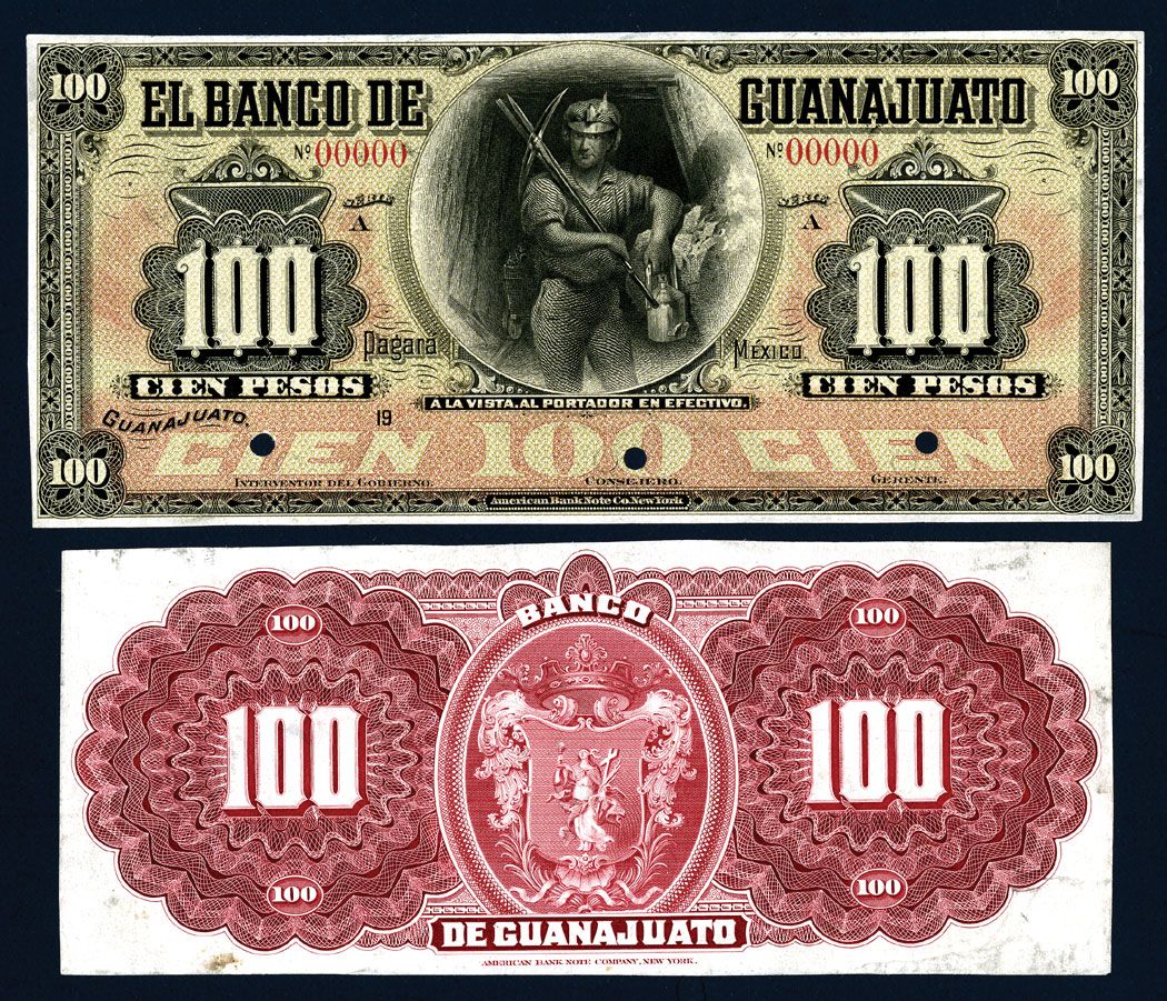 Guanajuato, Mexico. 19xx (ca. 1900-1903), 100 Pesos, Ser. A. P-S293p Unlisted with series. Proof face and Back printed on india paper. AU condition with thinning on the back of the obverse. ABNC.