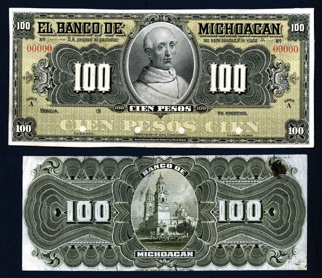 Morelia, Mexico. 19xx (ca. 1903), 100 Pesos, Ser.A, P-S342p, Proof face printed on thin card in Uncirculated and Back printed on india paper that is unmounted with small faults. ABNC. Extremely rare note in any form or condition that is missing from most advanced collections.