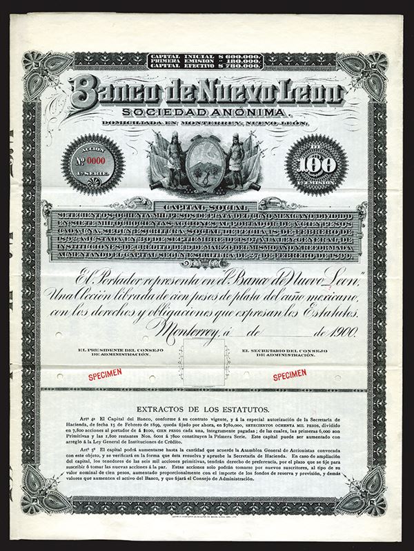 Monterey, Mexico. 1900, 100 Pesos, arms at center, ABNC, EF.
