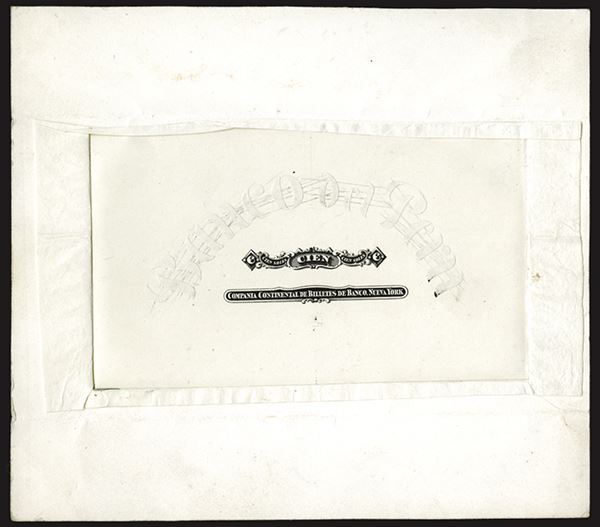 Peru. Banco de Peru plate (embossed, but not inked). Cien Soles and Continental BNC imprint in Spanish inked. On india paper on card. Continental BNC.