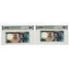 Portugal, 1978. Lot of 2 sequential banknotes, both PMG graded Choice Uncirculated 64, Includes: Sequential pair of 100 Escudos, P-169b issued banknotes. Blue on m/c underprint with portrait of Camilo Castelo Branco at right. S/Ns IBP61438 & IBP61439. Attractive pair of notes. (2).