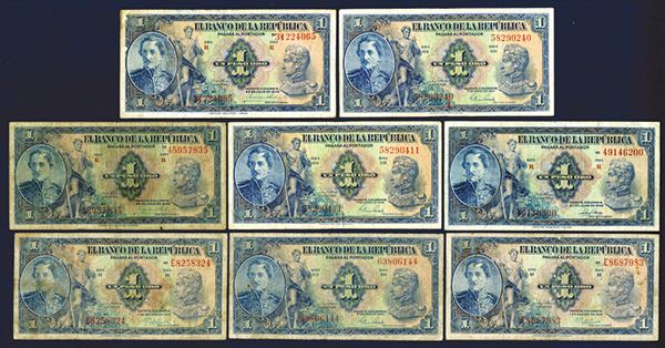 Colombia. 1, 2, 5 Pesos. Includes SCWPM 390, 398, 404, 406, 413. Generally Very Good to Fine, a few better, the first is fair. 24 pieces.