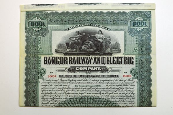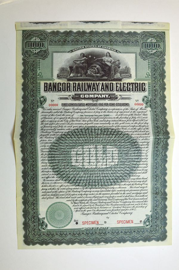 Maine. $1000 Gold Coupon Bond Specimen. ABNC. Extremely Fine.