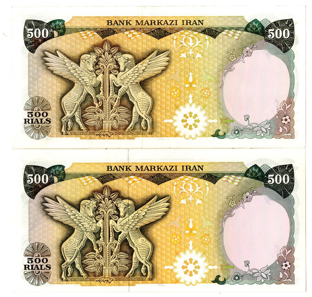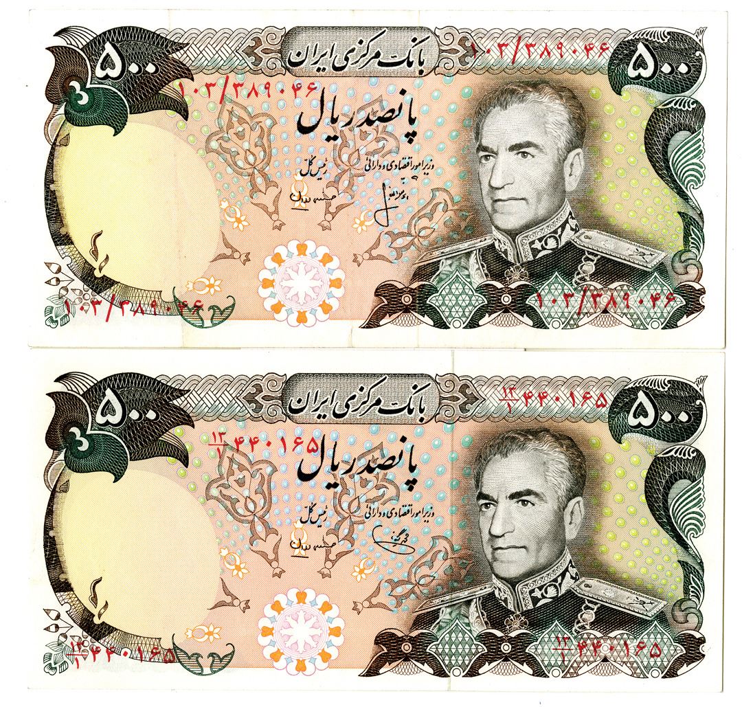 Iran. ND (1974-1979). 500 Rials, P-104c; 104d, issued banknote pair, Uncirculated to Choice Uncirculated condition or better, TDLR (2).