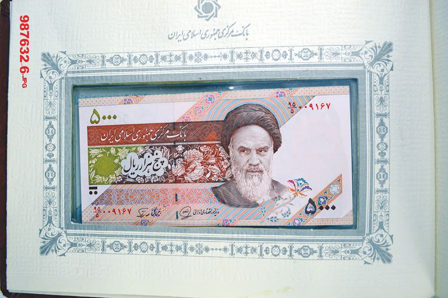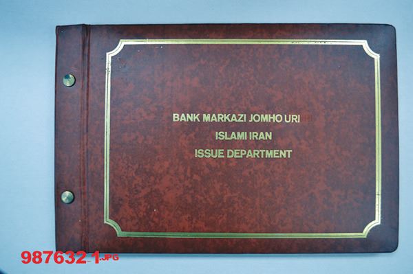 Iran, 1982 to 1993 ND Issue presentation book with 7 different notes from these issues. All are in Uncirculated to Gem Uncirculated. All are issued notes wit normal serial numbers. The booklet has information in the front about the notes. Scarce as a presentation book but no rare notes. Still attractive leather bound book.
