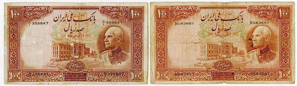 Iran. Lot of two issued notes, includes 100 Rials, AH1316 (AH1317), P-36b, Choice Very Good; and 100 Rials, AH1317 (1938), P-36Aa, Almost Fine.