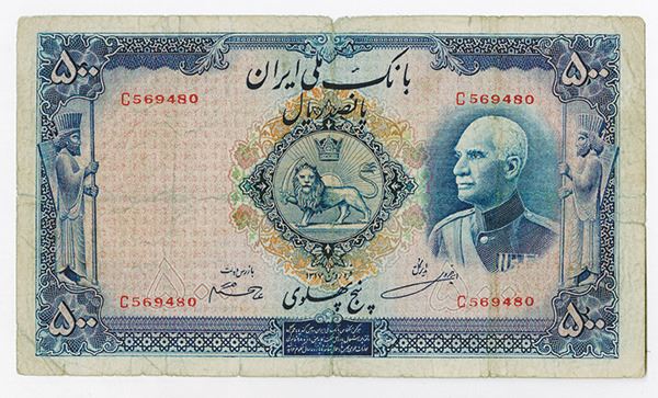 Iran. Issued 500 Rials, AH1317 (1938), P-37a with Western numbers, Choice Very Good.