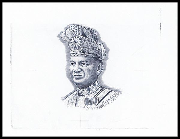 Malaysia, ND (ca.1967-2004), Essay Proof Portrait of T.A. Rahman. Printed in black on white paper with large margins with small guide lines. Rare proof vignette by either BW&C, TDLR, ABNC or USBNC. Unc.