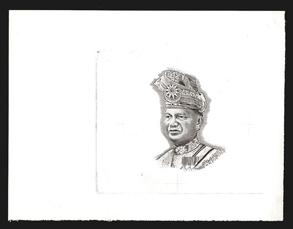 Malaysia, ND (ca.1967-2004), Essay Proof Portrait of T.A. Rahman. Printed in black on white paper with large margins with small guide lines. Rare proof vignette by either BW&C, TDLR, ABNC or USBNC. Unc.