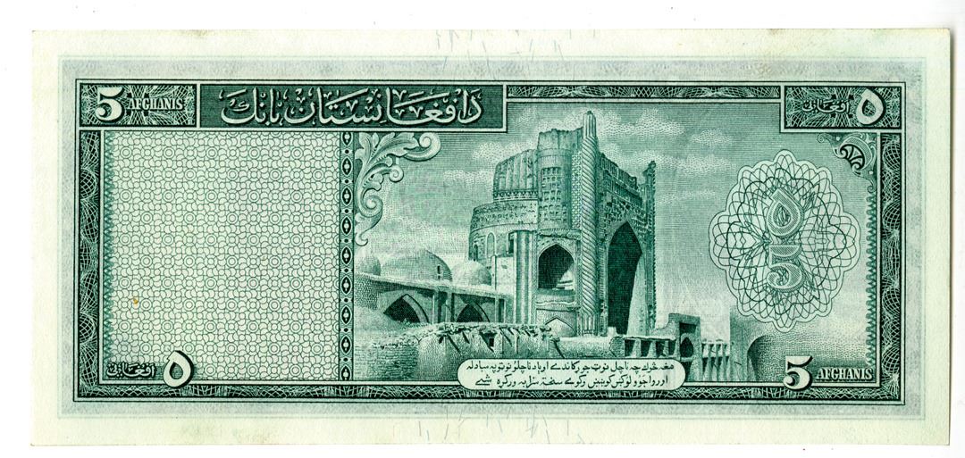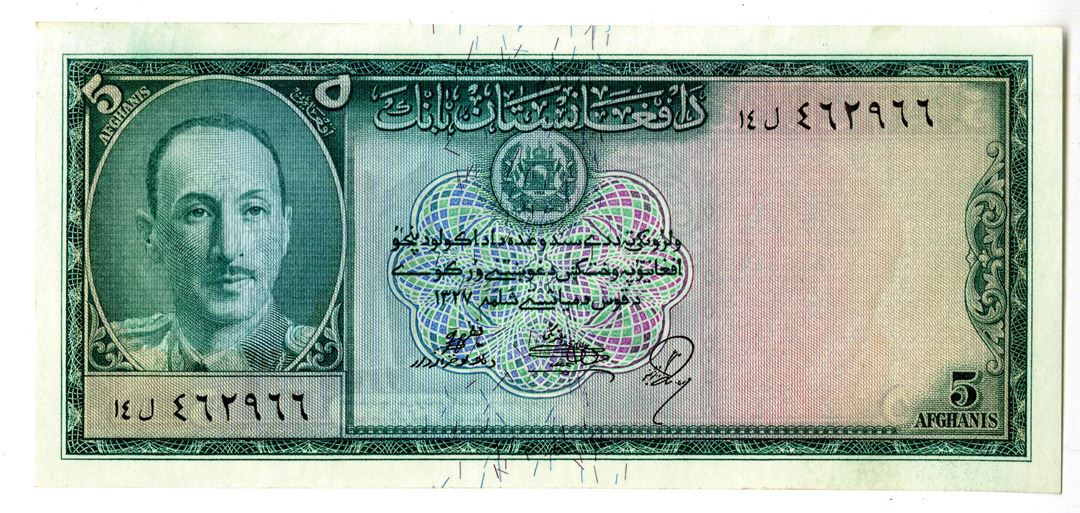 Afghanistan.... SH1327 (1948). 5 Afghanis, P-29a, Issued banknote, Green and multicolor. Choice VF to XF or better.