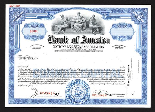 CA. <100 Shares, Black on light blue, Allegorical men and women on top over title, POC's, XF, ABNC. Rare.