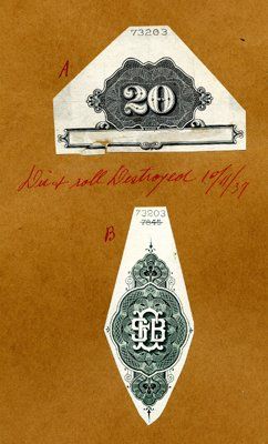Ottawa. Canada. ca.1935. P-46; P-47 Unlisted. $20. 3 different face and back proof denomination counters for P-46 and 47 of the numeral "20" printed on india paper and mounted in manila file folders. All of the vignettes were used in the design and production of this banknote and could be found on the face or the back of the note in the corners or as part of the denomination vignettes. Condition ranges from VG to AU. All with archival notations and hand written "Die Destroyed 10/11/37". Historic and interesting archival material from this popular issue. Canadian BNC.