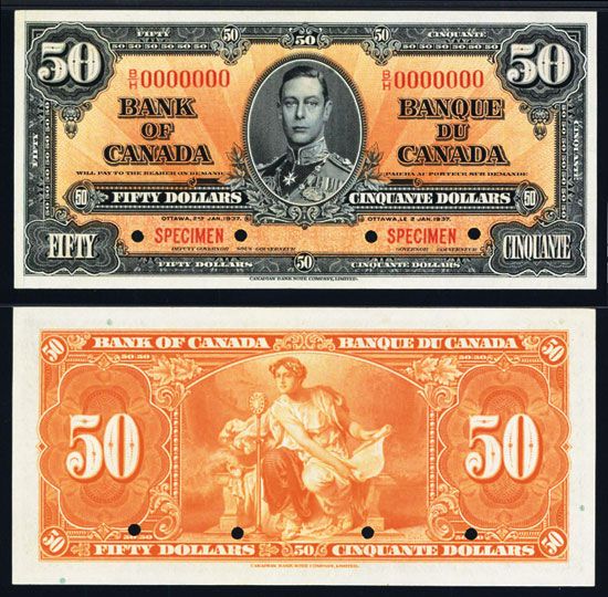 Ottawa, Canada, January 2nd., 1937, $2, BC-26S, Specimen banknote, S/N B/H 0000000, King George VI in middle, Red SPECIMEN overprints, POC's, PMG graded Gem Uncirculated 66 EPQ, British American BNC. Rare note in any format and especially as a specimen in this superb grade.