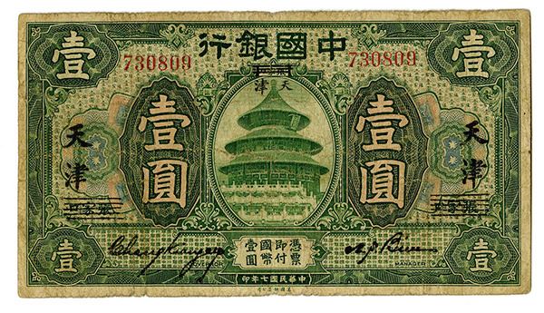 Tientsin/Kalgan, China. 1 Yuan, P-51r (S/M#C294-100s), Issued banknote, green on m/c, pagoda in middle, back green, S/N 730809, Fine condition, rare note. ABNC.
