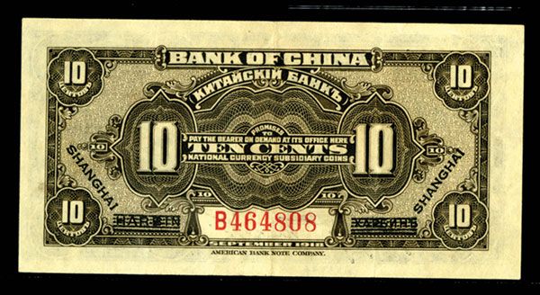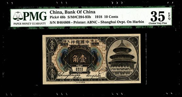 China, 10 cents, P-48b, S/M#C294-93b, Issued banknote, black on m/c, PMG graded Choice Very Fine 35 EPQ, rarely seen this nice and with bright colors, sharp corners and firm paper appears XF+. ABNC.