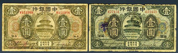 China. Lot of 2 notes, Both 1918, $1 issues, includes Shanghai, P-51m and Shanghai/Peking, P-51l (S/M#C294-100k), Both VG to Fine with a rough top margin on the Shanghai/Peking. Rare branch issue. ABNC.