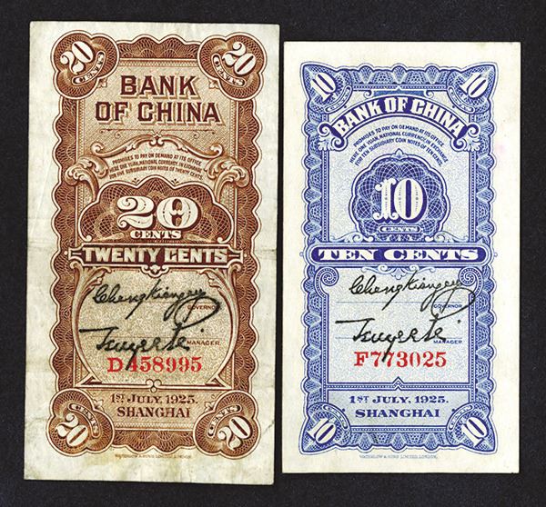 Shanghai, China. Lot of 2 notes, Includes 10 cents, P-10, S/M#C294-151, Issued, Uncirculated to CU; and 20 cents, P-64a, S/M#C294-152, VF.