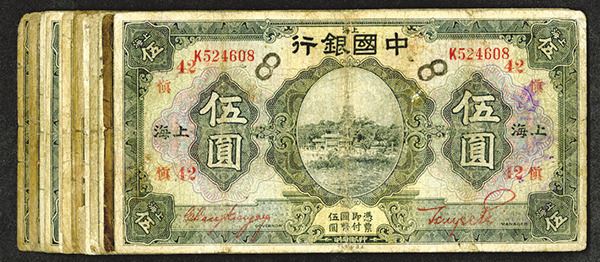 China. 5 Yuan. P-66b (17). Red Signature. All the same red signature variety. Good to Very Good. 17 pieces.