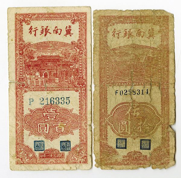 China, Lot of 2 notes, Includes 50 Yuan, -S3075, VG; and 100 Yuan, P-S3076, Fine, Scarce notes.
