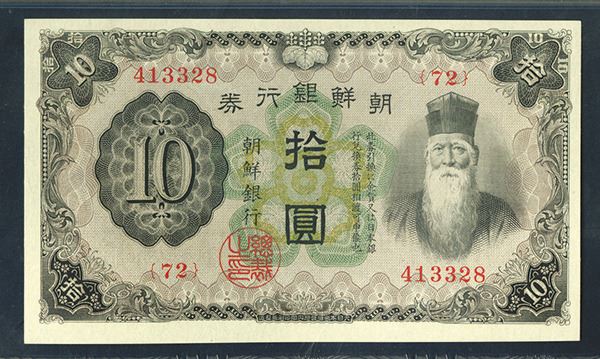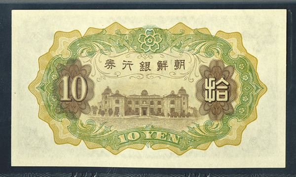 Korea. Both are 10 Yen, P-31a, K&C51.6 / DK34-2, Issued banknote pair , S/N and Block numbers, black on green underprint, the notes are PMG graded Choice Uncirculated 64 EPQ and About Uncirculated 63 EPQ.