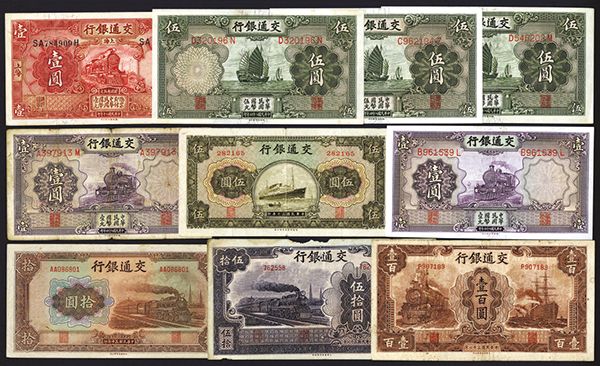 Lot of 10 notes, Includes 1942, 50 & 100 Yuan, P-164b and P-165, Choice Fine to VF; Various 1931 to 1941 Issues in Fine to CU condition. Attractive mostly high grade assortment.