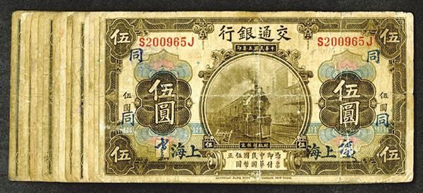 China. 5 Yuan. P-117o (15). Numerous varieties of additional overprints, control numbers, as well as ink graffiti. All different. Mostly Good-Very Good. 15 pieces.