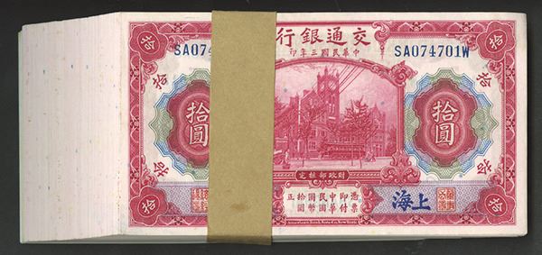 Shanghai, China, P-118q, Issued banknotes, Shanghai in blue-black, red signatures , Serial numbers on face and back, AU to Gem Uncirculated with a considerable amount Choice AU to Choice Unc.. Fresh appearing.