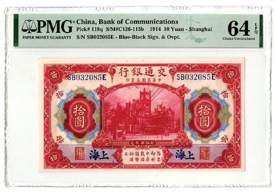 China. 1914. 10 Yuan, P-118q, S/M#C126-115b, issued banknote, PMG Graded Choice Uncirculated 64 EPQ.