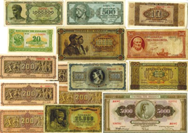Greece. Lot includes issued 5000 Drachmai, 1932, P-103, UNC; 10 and 20 Drachmai, 1940; 50 Lepta, 50 Drachmai, and 100 Drachmai, 1941; 1000, 5000, and 1000 Drachmai, 1942; 25000 Drachmai, 1943; the rest mostly 1944 inflation issues with some duplication. Generally Fine to Very Fine. Please inspect.