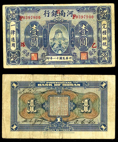China, 1 Yuan, P-S1673 S/M#H62-1, Issued banknote, Blue with red seals and text, back blue on m/c, S/N F03979000, Choice Fine to VF condition, scarce note in any grade. BEPP