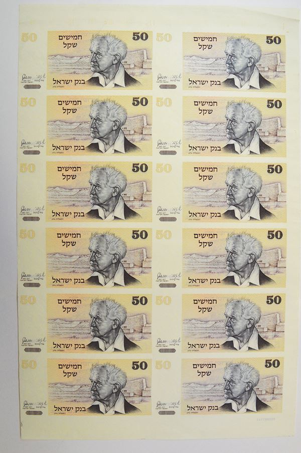 Israel. Bank of Israel. 1978 Issue, 50 Sheqalim. Uncut Sheet of 12. SCWPM 46e. As made. Extremely Fine or better.