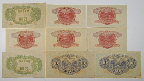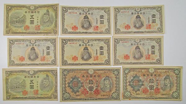 Japan. Lot includes an assorted group of 1 Yen, 5 Yen, 10 Yen, 50 Yen, and 100 Yen spanning across several issues. P-39 (2); 40; 43 (4); 49 (5); 50 (2); 51 (3); 54 (2); 56 (3); 57 (2); 60. Generally VF or better. (26)