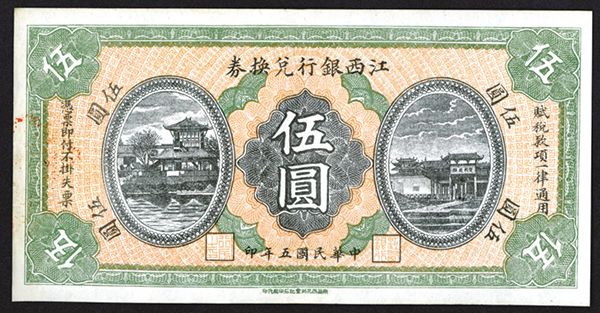 China, $5, P-S1101, S/M#C102-11, Issued banknote, Face black and green on orange underprint, back red and blue, S/N 216659, Uncirculated to CU condition. Rare note in any grade and rarely seen this nice.