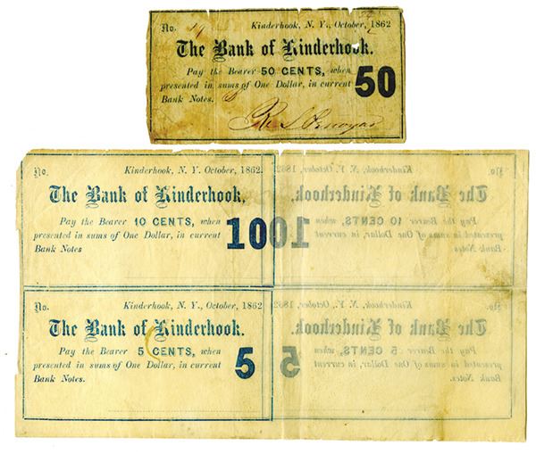 Bank of Kinderhook, 1862 Issued Single 50cts Note and Uncut Block of 4 Obsolete Scrip Notes.