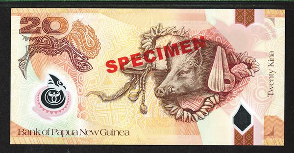 Papua New Guinea. 20 Kina, 2014. P-Unlisted when graded. Red SPECIMEN overprint on each side. Graded PMG Gem Uncirculated. 66 EPQ.