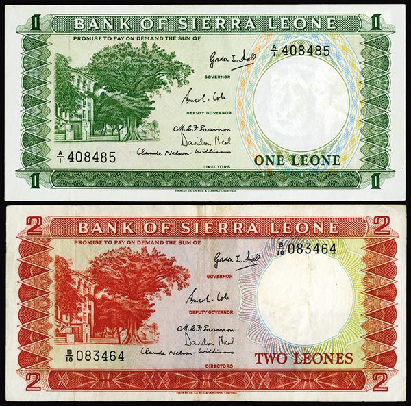 Bank of Sierra Leone, 1964 to 2010 Banknote Issues. Sierra Leone, lot of 36 banknotes, Includes 1 Leone, P-1a, AU-Unc and 1b, VF; 2a; P-7d; P-9; P-21a; P-33 and many others, colorful, attractive and mostly AU to Uncirculated or better.