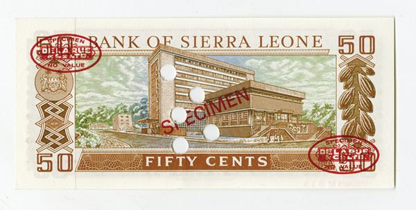Sierra Leone. 1980, 50 Cents, P-9s, Specimen Banknote, TDLR, Specimen No 013. Gem Unc. (Hammurabi Collection of Serial #13 Notes)
