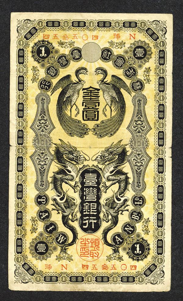 China - Taiwan. 1 Yen. P-1911. Two Cockerels at top center, two dragons below. Fine-Very Fine.