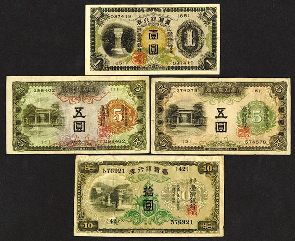 China, Taiwan.1, 5, 10 Yen. P-1925a; 1926a, 1927a, 1929. Generally Fine to Choice Very Fine. 4 pieces.