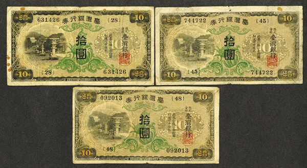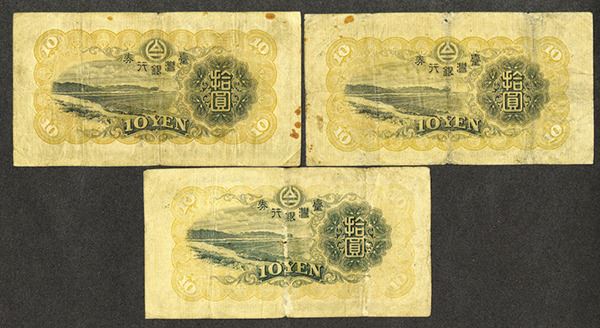 China. 10 Yen. P-1927 (3). S/M T70-32. Fine, some with stains. 3 pieces.