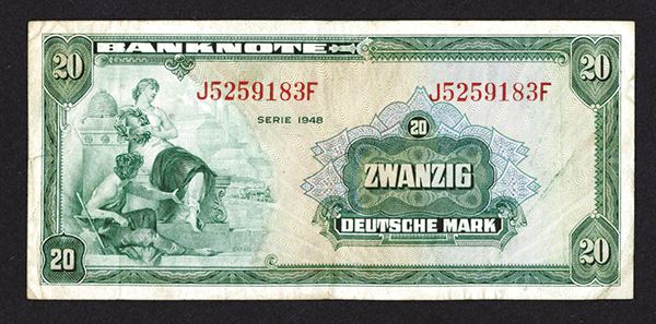 Germany, Federal Republic, 1948 Issue. 20 Marks. SCWPM 6a. Very Good, a bit dirty on back.