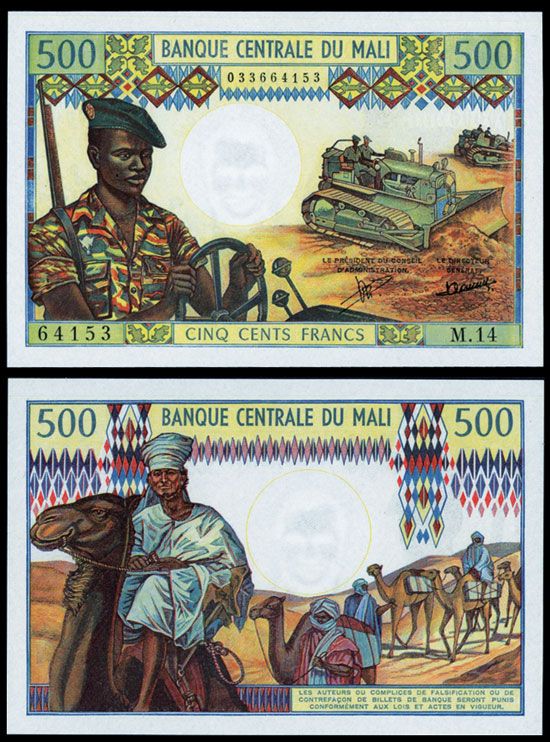 Mali, ND (1973-84), 500 Francs, P-12b, Issued banknote, Signature #5, Man with tractor on face, men with camels on back, PMG graded Ò67 Superb Gem Uncirculated - EPQ (Exceptional Paper Quality)Ó, It will be difficult to find a higher condition note since this one is so close to perfection.
