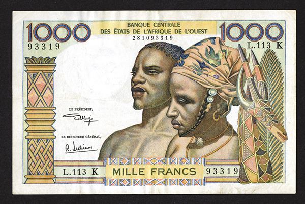 West African States - Senegal. 1000 Francs. P-703Kk. Couple at right end. Signature 9. Nice Very Fine.