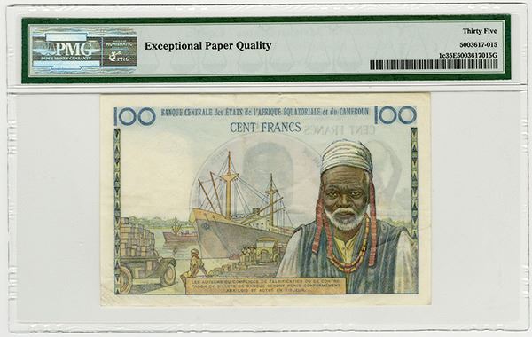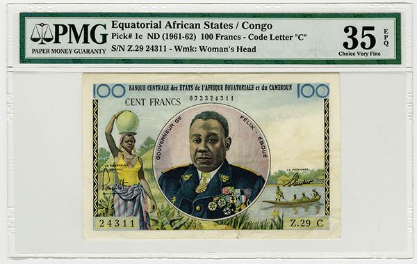 Equatorial African States / Congo. Issued 100 Francs, ND (1961-1962), P-1c. PMG graded Choice Very Fine 35 EPQ (Cert # 5003617-015).