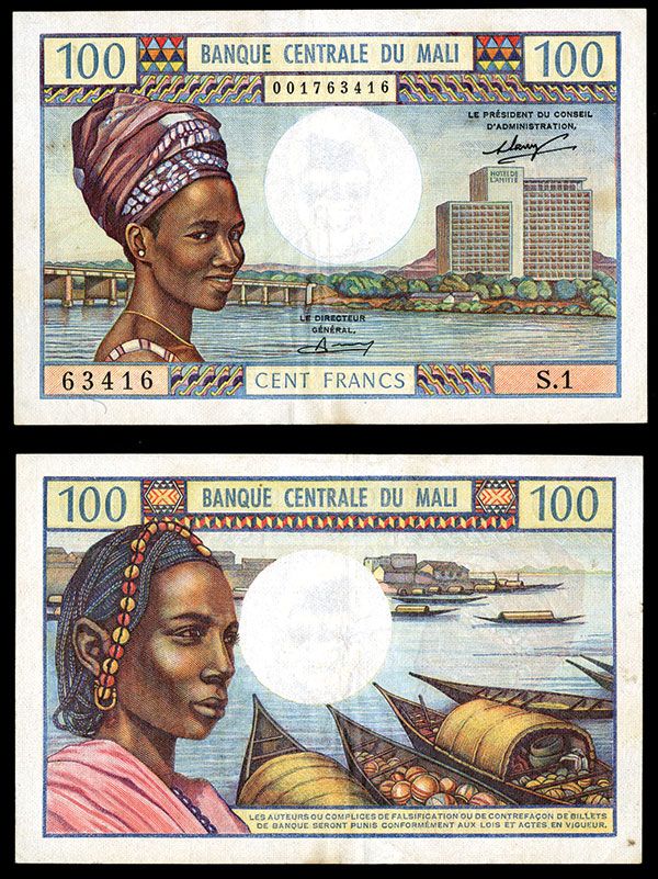 Mali, issued note, 100 Francs, P-11, ND (1970-73), XF.
