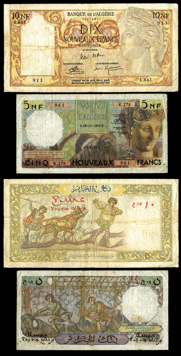 Algeria, 1959 Issue, pair of 2 issued notes, includes 5 Nouveaux Francs, P-118a, VF, dated 18-12-1959; and 10 Nouveaux Francs, P-119a, VF, dated 10-2-1961.