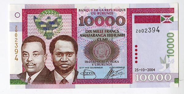 Burundi.. 10,000 Francs, P-43a, Replacement note, S/N Z002394, Choice to Gem Uncirculated.