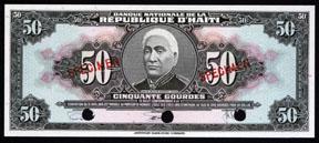 Lot of 2 Specimen banknotes from the Convention Du 12 Avril 1919 - Tenth Issue. 50 Gourdes. P-204s. 2 different signature varieties. Red specimen overprints and POC's. Pres. Jeune in middle. Unc. to CU. ABNC.
